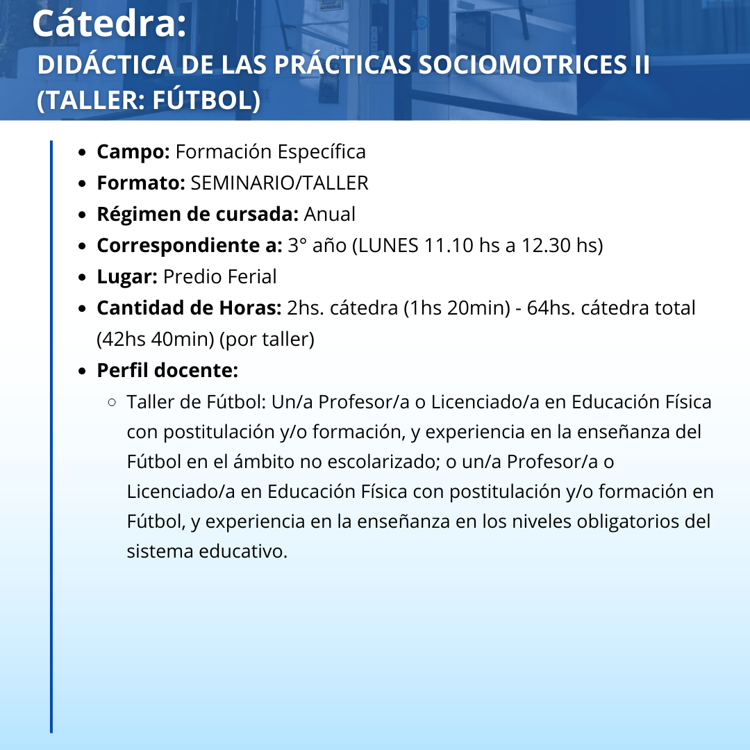 PROFESORADO de EDUCACIÓN FÍSICA ( Res ME 325/22)De acuerdo a lo establecido en la reglamentación vigente que atañe a los Institutos de Formación Superior docente, se postula el 3° Llamado a Concurso Docente Abierto para la cobertura de las unidades curriculares para el ciclo lectivo